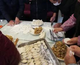 上午十点,参加活动的教职工陆续来到北苑教工餐厅,饺子馅、面皮等活动需要的食材物品一应俱全。大家分别找到自己的拿手项目:擀饺子皮、包饺子、煮饺子还有吃饺子。