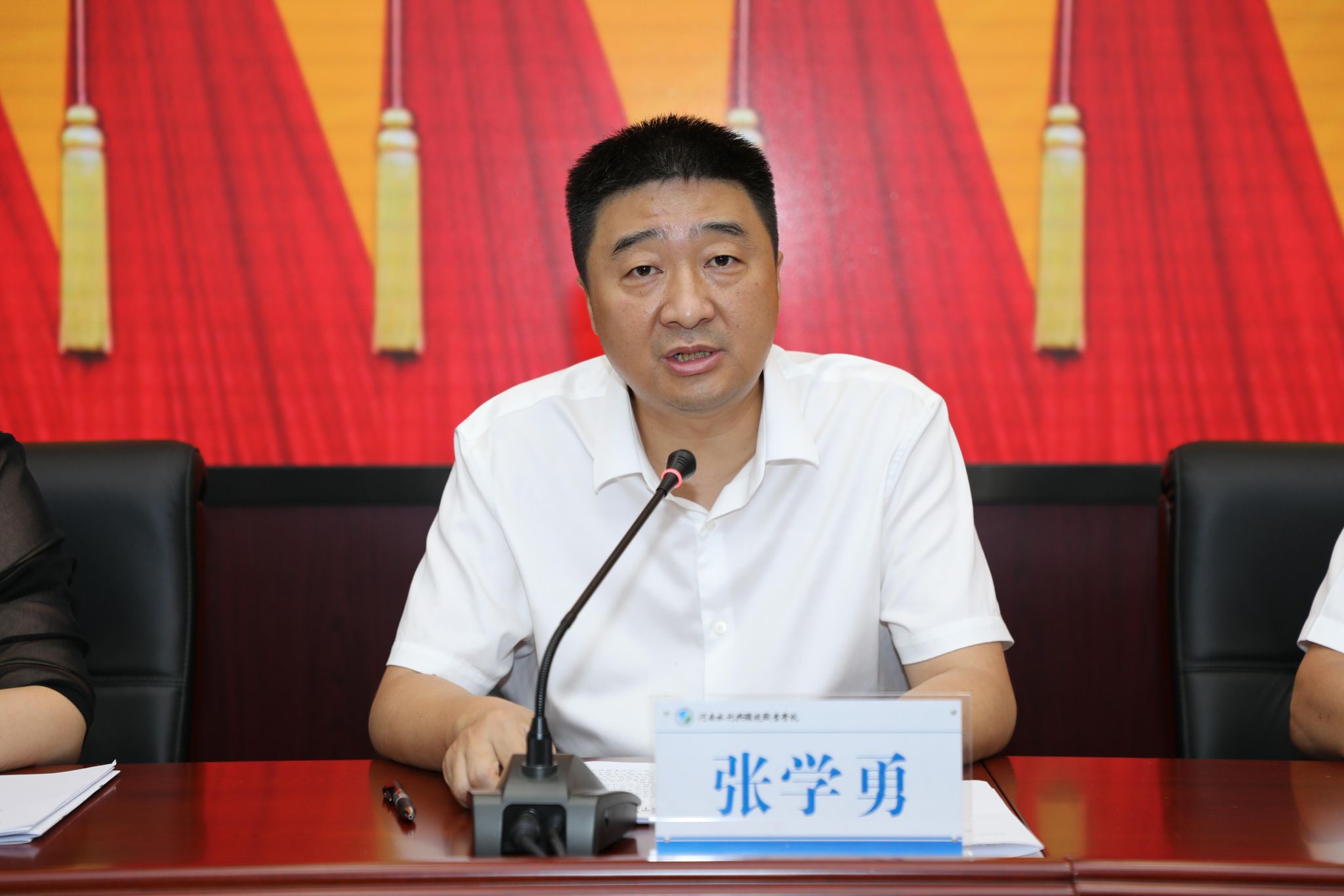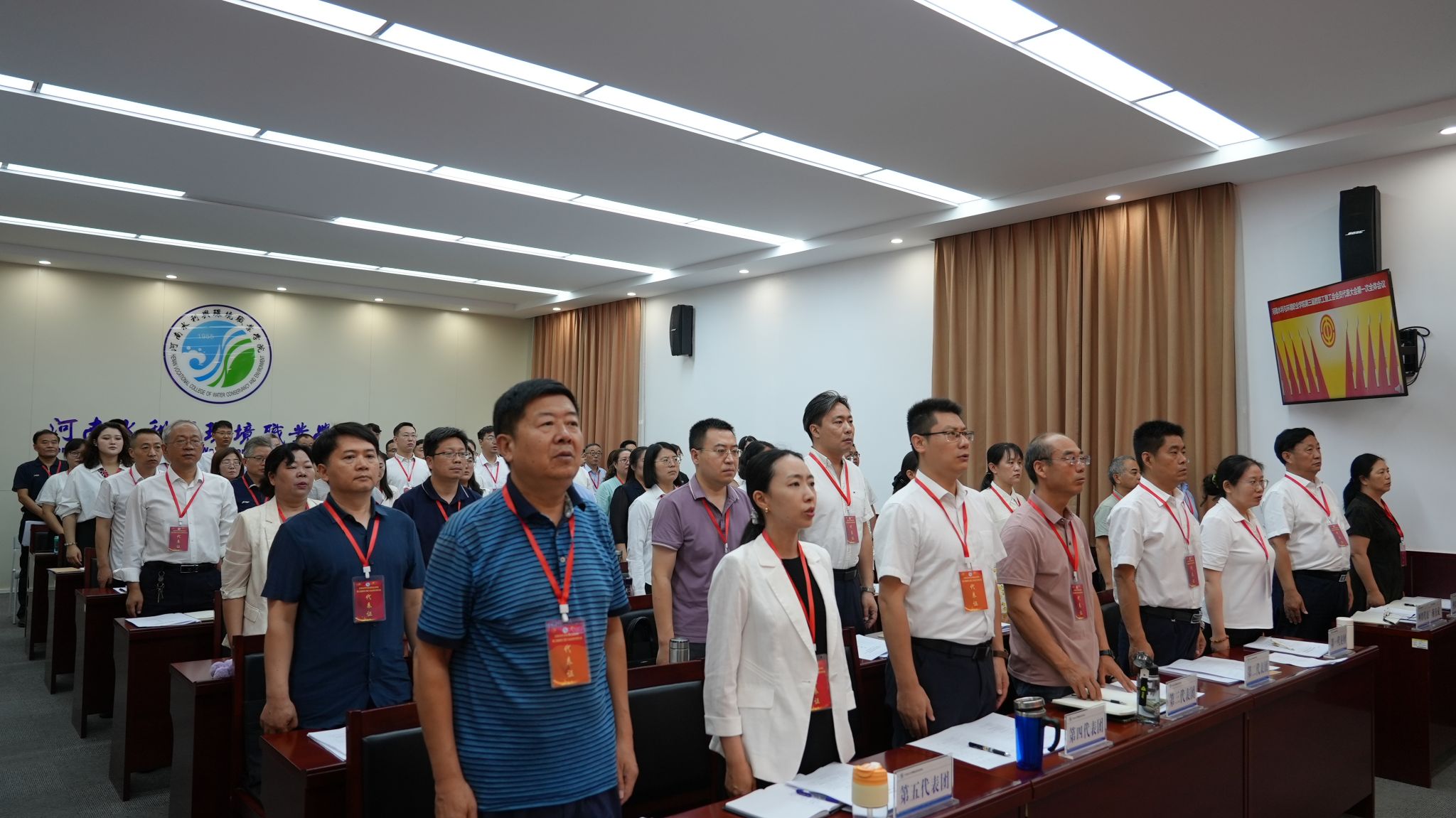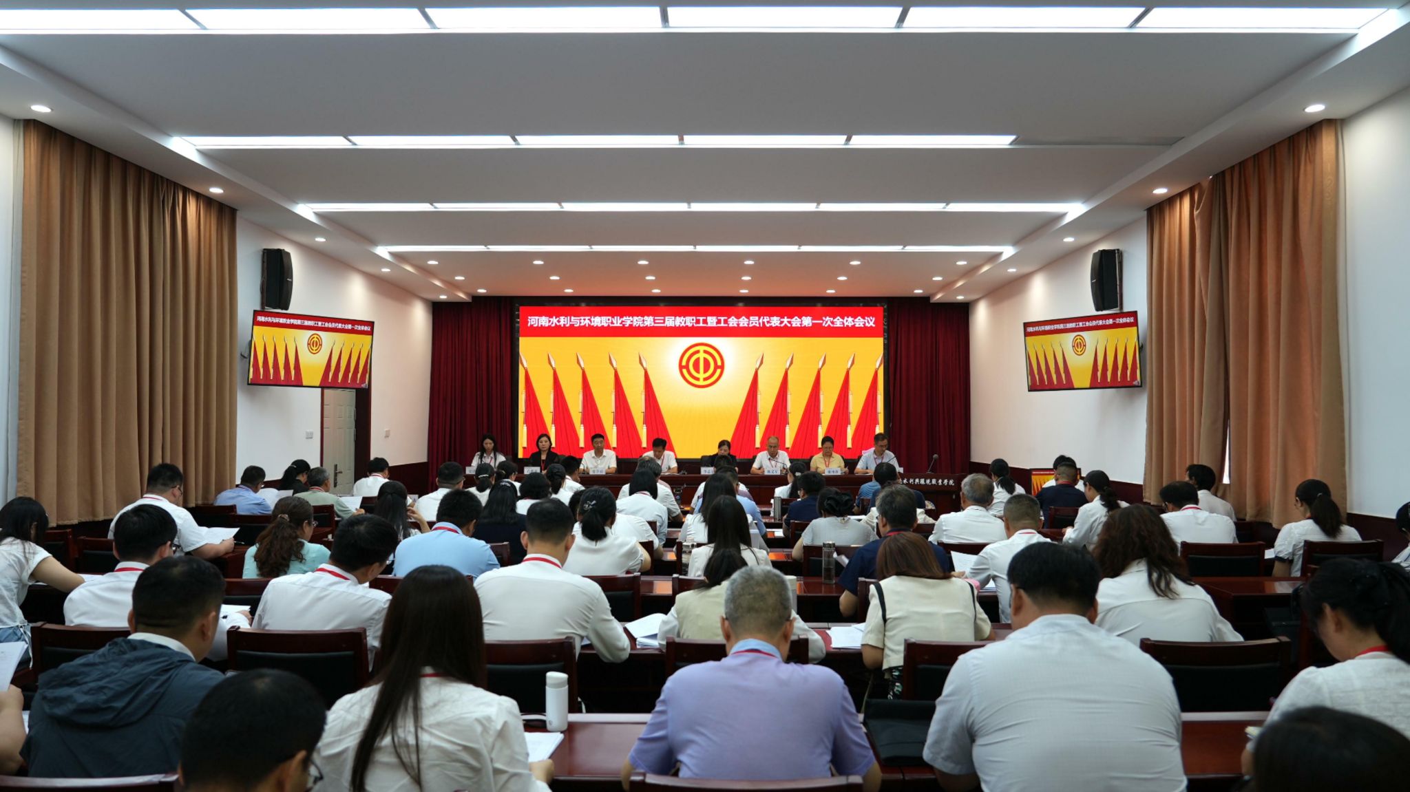 6月30日上午9:30,随着雄壮的《中华人民共和国国歌》旋律,我校第三届教职工暨工会会员代表大会第一次全体会议在花园路校区图书馆学术报告厅正式拉开帷幕。河南省教科文体工会主席张学勇出席会议并致辞。全体校领导班子成员出席会议,60名正式代表、列席代表参加开幕式。会议由党委副书记、工会主席魏义军主持。