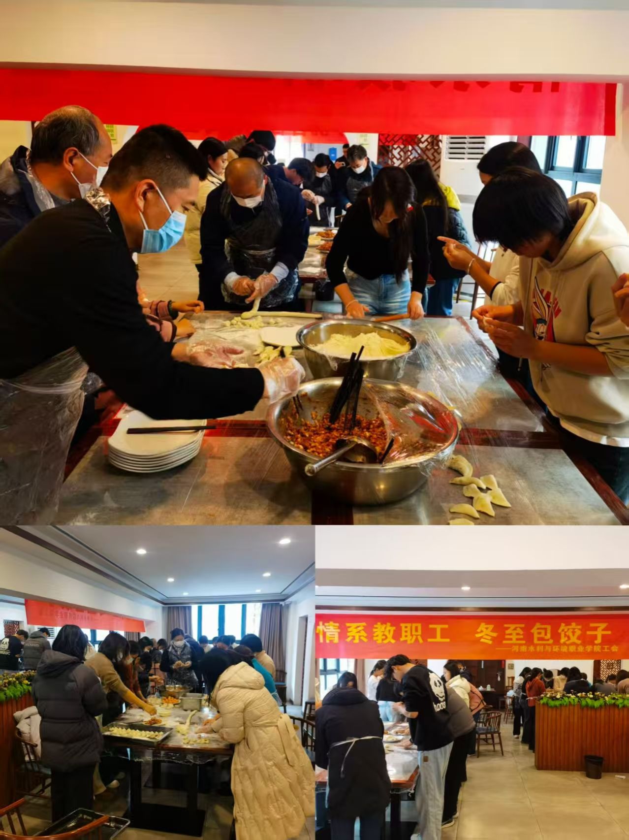 12月18日、19日,校工会分别在花园路和航空港两校区开展“情暖冬至 温馨水环”主题活动。两校区共80余名教职工齐聚一堂,在忙碌的工作之余带来一抹温暖的烟火。